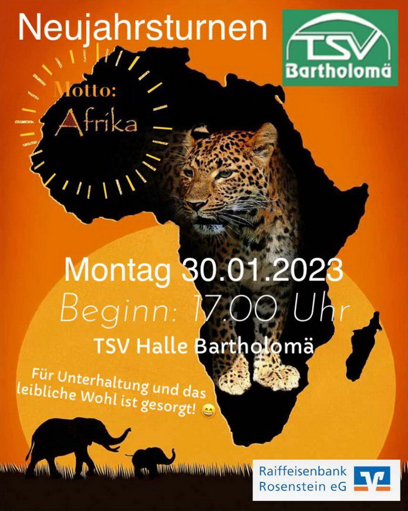 Am Montag, 30.01., fand des Neujahrsturnen der Turnabteilung statt. Über 100 Kinder nahmen in einem tollen Programm die Zuschauer in der vollbesetzten TSV-Halle mit auf eine Reise nach Afrika.