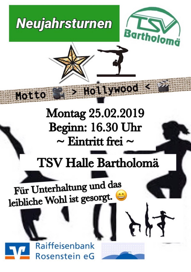 Am Montag, 25. Februar, findet um 16.30 Uhr in der TSV-Halle unser diesjähriges Neujahrsturnen statt.