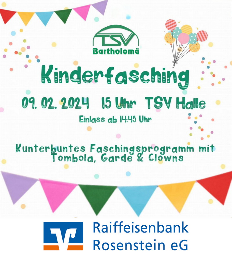 Am Freitag, 9. Februar 2024, fand der Kinderfasching des TSV Bartholomä statt, ein Fest für Groß und Klein. Geboten war ein abwechslungsreiches, kunterbuntes Faschingsprogramm: Unsere drei Gardegruppen zeigten ihr Können und heizten dem Publikum ordentlich ein.